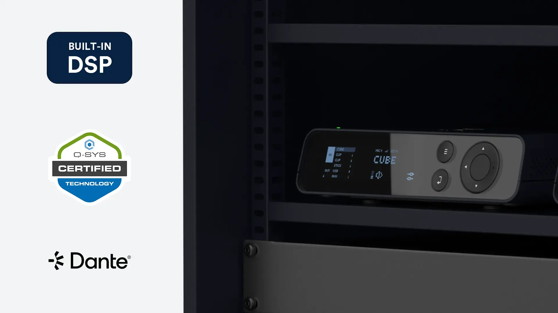 Integrated DSP and mixer automatically manage microphone levels, suppress feedback for in-room amplification, and minimize echo for far-end conferencing. Additionally, we support analog, DANTE, and USB audio inputs, enabling seamless signal mixing and routing to either analog or DANTE outputs.